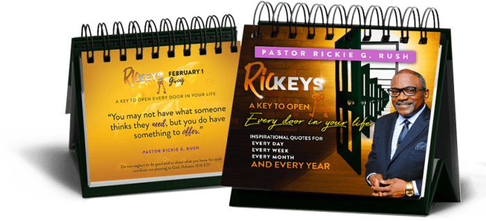 Get daily inspiration from Pastor Rush with RicKEYS: A Key to Open Every Door in Your Life! Inspirational quotes for every day, every week, every month and every year. Click Here to get yours today!